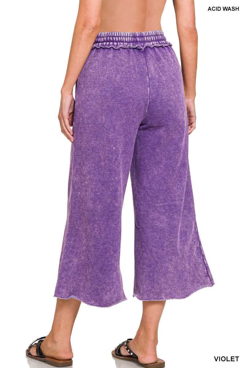 ACID WASH FLEECE PALAZZO SWEATPANTS WITH POCKETS
